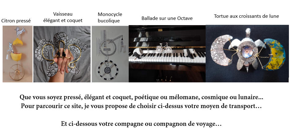 Pour parcourir ce site, commencez par choisir un moyen de transport, un compagnon ou une compagne de voyage, ainsi que un instrument de musique...