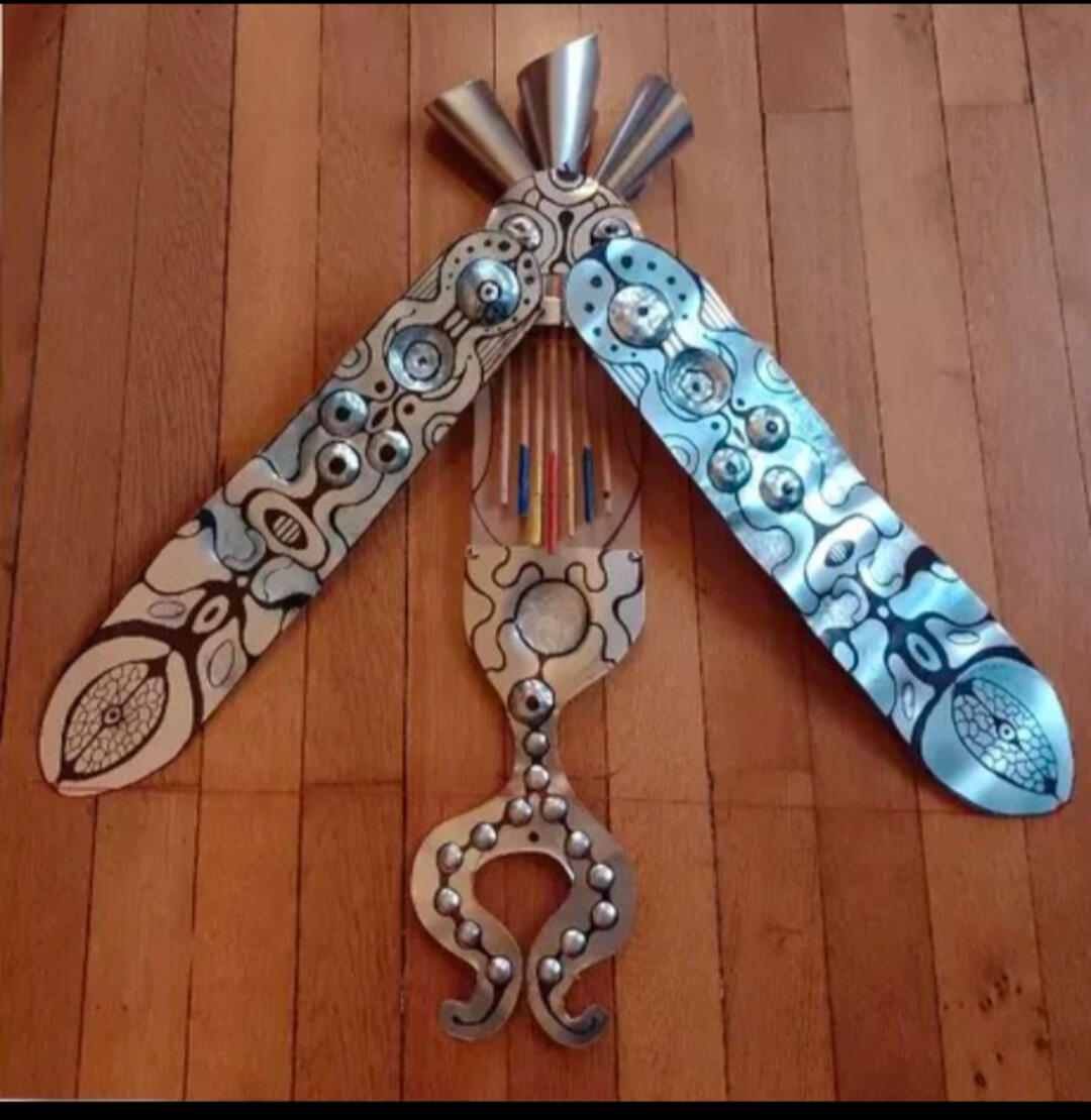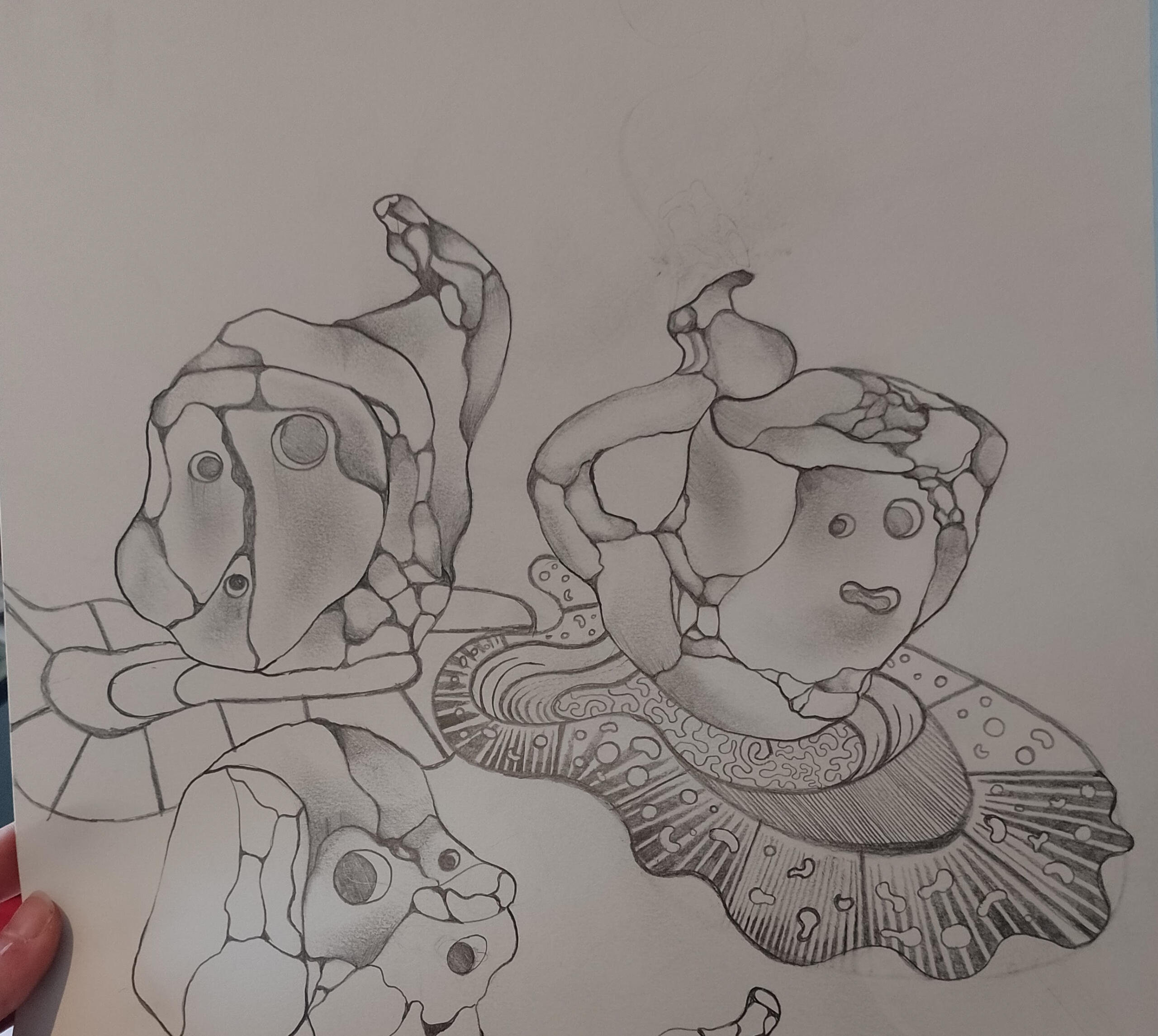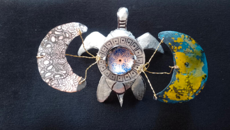 Actuellement installée à Angers, ma ville natale mes études d'art m'ont fait voyager dans plusieurs villes en France ( Paris, Nantes, Strasbourg, Limoges). Très curieuse, j'aime découvrir sans cesse de nouvelles techniques aussi pour ne pas que mes idées soient trop " hors-sol" et puissent etre réalisées. Après un bac général classique, économique et social j'ai eut envie de me tourner vers des études artistiques, ayant une personnalité creative et pratiquant déjà la musique et l'écriture poétique ainsi que le dessin aux Beaux-Arts d'Angers. A la fin de ma mise a niveau en arts appliqués j'ai découvert le travail de la matière lors d'un chantier participatif (forge et ferronnerie d'art) et je me suis rendu compte que le concret de la technique et la poésie des mots ne s'opposaient pas forcément même si elles impliquent un état d'esprit différent. Des lors mon but a été de lier l'écriture poétique avec la création d'objets notamment dans des installations accompagnées de jeux de mots association qui me tient très a coeur depuis petite d'objets avec les mots qui sont pour moi aussi importants que l'objet en lui-même. Je souhaite qu'ils aient un côté bon enfant et drôle que je trouve précieux. La rencontre avec Marie Hélène Soyer, maître d'art en émaillage sur métaux qui manie aussi bien les mots que la matière a appuyé mon choix. La rencontre insolite avec un couple d'organiste de rue qui se font appeler les Moineaux Chanteurs ( orgue de barbarie) lors d'un été chez ma grand mère m'a aussi guidée vers des " partitions graphiques et musicales" ( John Cage...) donné envie d'associer musique et objets. Cela m'a conduit a faire de nombreux stages afin d'apprendre des savoirs faire ( émaux sur métaux, dinanderie, arts du verre, céramique...) en parallèle de ma formation aux arts décoratifs de Strasbourg ( HEAR option art-objet bijou contemporain et metal) ou j'ai obtenu mon diplôme de master ( DNSEP) en 2023 et ou un grand plateau technique permet d'aborder différents matériaux et techniques ( que j'aimerais approfondir ensuite ( initiation au tournage sur bois... ). Puis après le master, une formation d'un an a Limoges m'a permis de me perfectionner en émaillage sur métaux mais aussi de découvrir la décoration sur porcelaine. J'ai aussi fait de nombreux chantiers participatifs de restauration du patrimoine en tant que bénévole avec l'association Rempart, ( forge et ferronnerie d'art, orfèvrerie médiévale...) qui se déroulent dans des châteaux du Moyen-age en France où ailleurs. Toutes ces rencontres avec des professionnels aux univers divers et variés et aux personnalités inspirantes, foisonnantes, voire chatoyantes, ainsi que de nombreux voyages culturels ( Japon, Cappadoce en Turquie, tour d'Europe...) m'ont beaucoup apporté. Au fil de ces voyages j'ai eut le désir de garder une trace de ces personnes, mais aussi de les remercier en dressant leur portrait en musique...c'était mon projet de diplôme sous forme de boîtes a musiques, projet que j'aimerais développer car la musique anime les objets.Le graphisme est très présent dans mon univers. J'aime apporter une touche de fantastique a mes créations, souvent issues de mondes imaginaires et en lien avec la nature. Il s'agit parfois de créatures chimériques..La poésie et la symbolique sont aussi très présentes. Les créations prennent souvent sens avec les mots qui les accompagnent...J'avance souvent a tâtons, par de nombreuses expérimentations, et de la détermination, pour lier mes différentes passions partagée entre des moments de joie et des moments de tristesse car mis a part la vulnérabilité qui peut concerner tout un chacun, il y a celle propre au domaine artistique : tout de même c'est pas facile de vivre de son art!