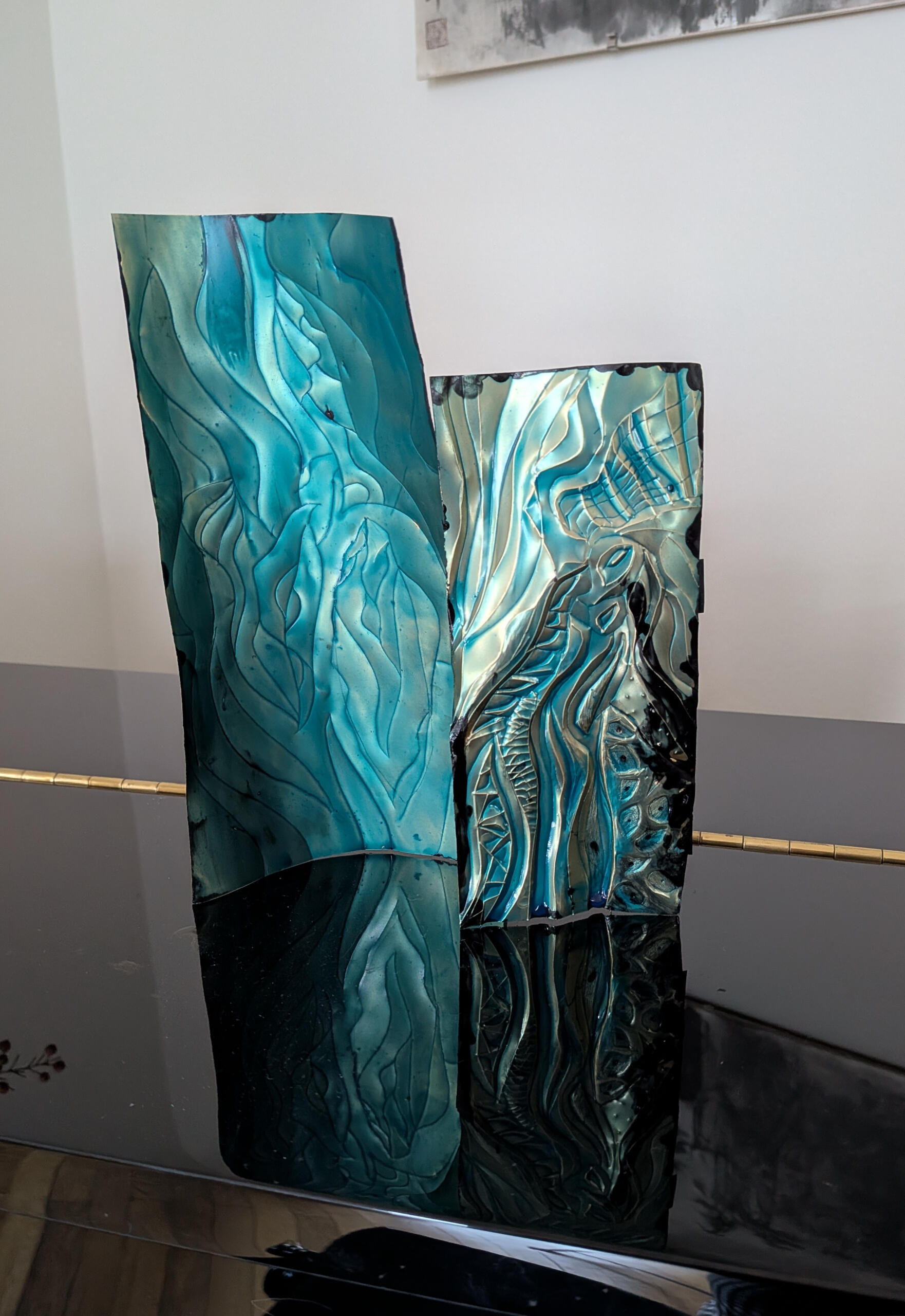 Mon four à émaux est un petit laboratoire aux intempéries guidé par mon tourbillon d’émotions. Cette matière, l'émail, sublime mes émotions en raison de l'éclat de ses couleurs.Mon atelier est tel une planète à échelle réduite, un microcosme dans lequel se produisent des phénomènes émotionnels et climatiques : tempêtes, ouragans, temps mitigés et eaux plus limpides...